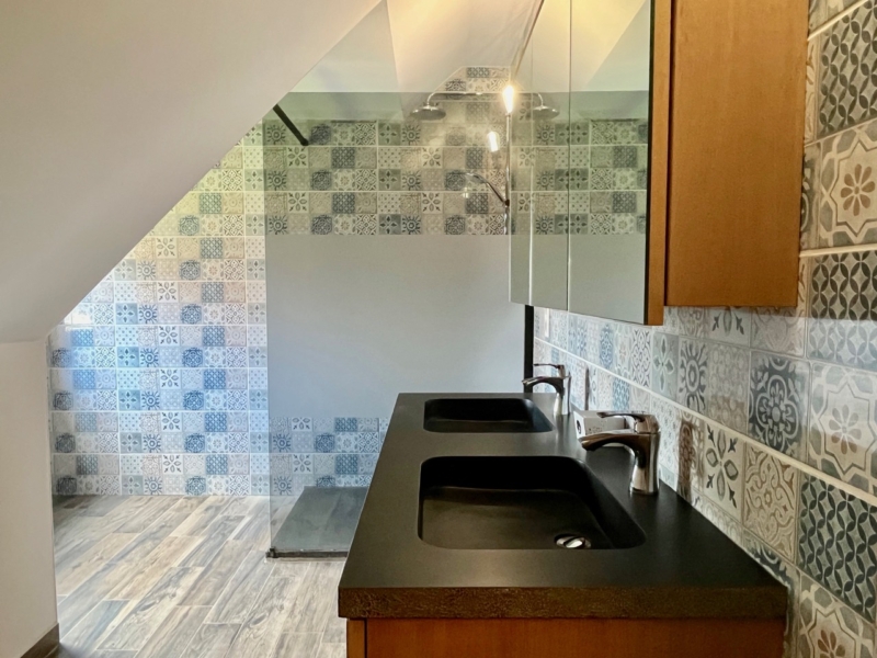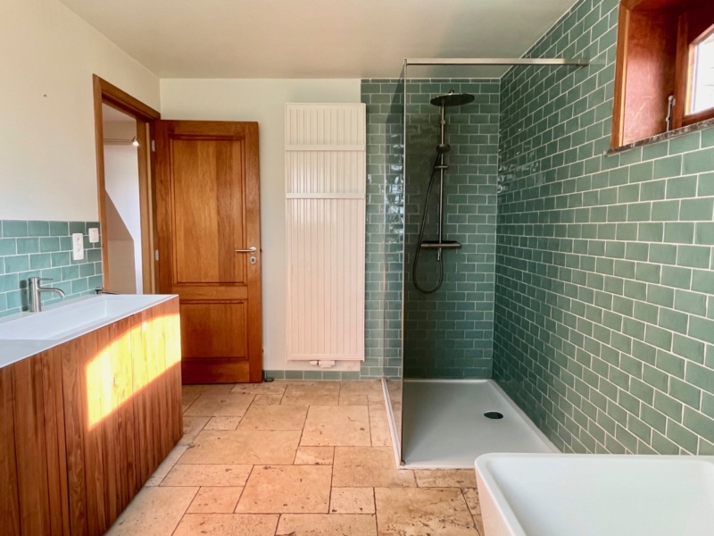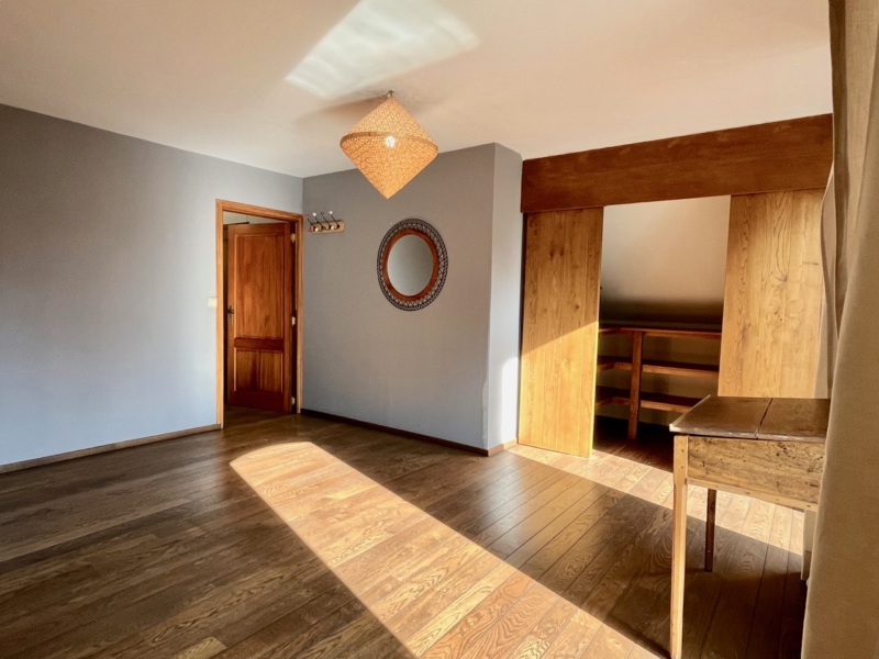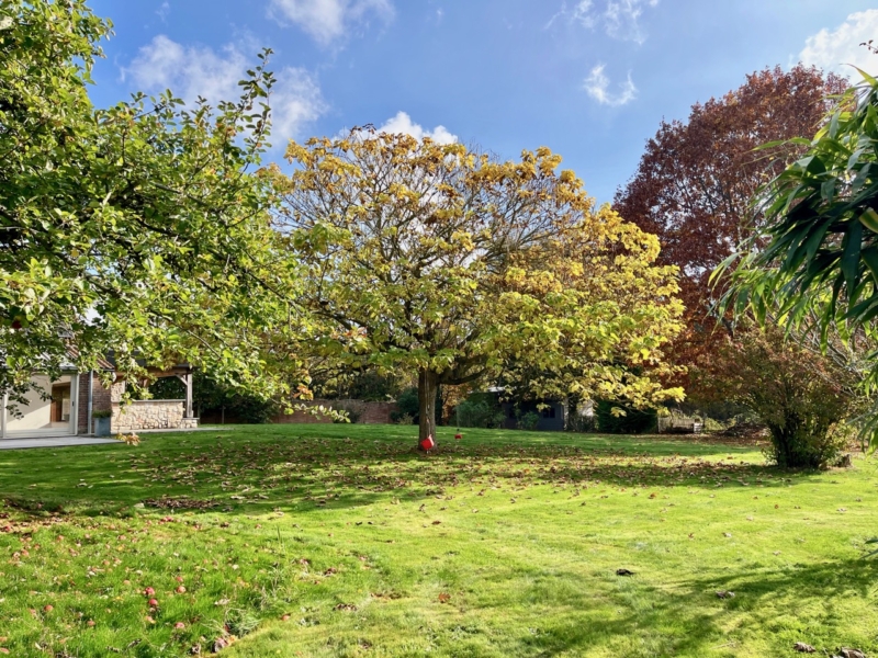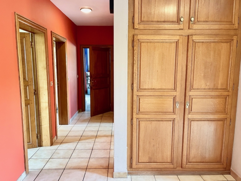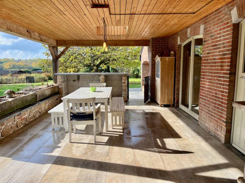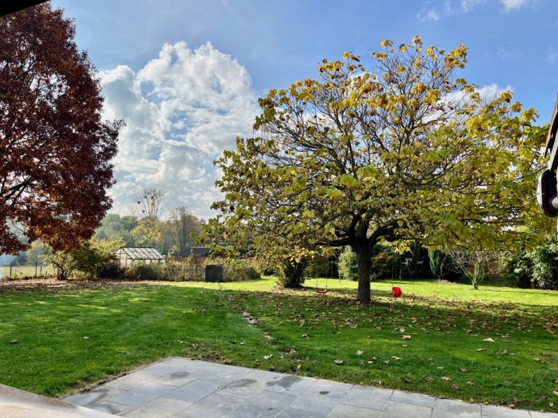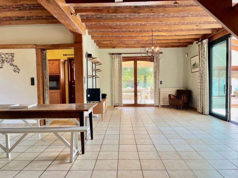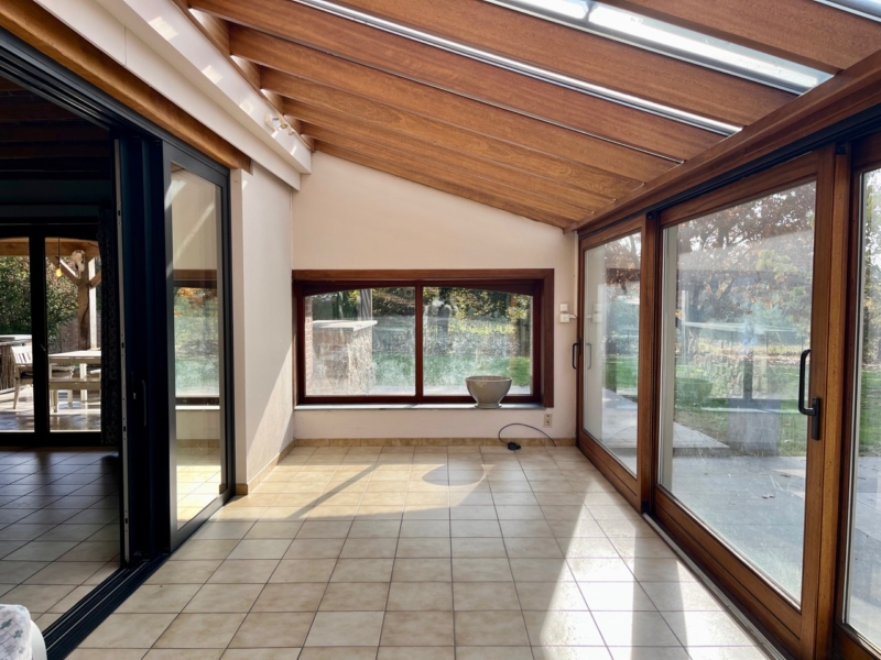 Coup de coeur assuré ! Cette villa au caractère enchantant offre des espaces et volumes idéaux. Elle semble déposée au calme sur un terrain de plus de 30 ares (sur deux parcelles en zone d’habitat), parfaitement orientée Sud avec des champs en arrière zone. Des dépendances : grand garage indépendant (65 m2) et abri de jardin viennent compléter l’ensemble. La propriété, idéale pour une grande famille et/ou pour une profession libérale, se découvre via un vaste espace de stationnement intérieur en pierre porphyre. On découvre alors l’élégant bâtiment associant le bois, la brique, la pierre,… Les pièces de vie se déclinent comme suit : un vaste hall, un spacieux salon – salle à manger, une cuisine, une véranda le tout prenant jour sur le jardin arboré, 2 chambres/bureaux au rez, une salle de bain, un grand garage, un cellier, une pièce dans la prolongation du garage en complément. À l’étage : un palier dessert d’un côté une chambre parentale avec dressing, une salle de douche italienne avec wc et lavabo, et de l’autre côté un vaste palier dessert 3 belles chambres et une salle de bain (douche italienne, baignoire, wc, lavabos). Plusieurs terrasses offrent une vue bucolique, dont une sous pergola récente. L’élégance et la qualité de la construction/rénovation, mettant en lumière la beauté des matériaux, offre au premier regard dans ce lieu de vie un sentiment de confort paisible. PEB B 373m2 SEM, panneaux photovoltaïques, citerne d’eau, AirCo chaud-froid,… Prix indicatif : 540.000€ – Prix, publication, superficies à titre indicatif, non contractuels –