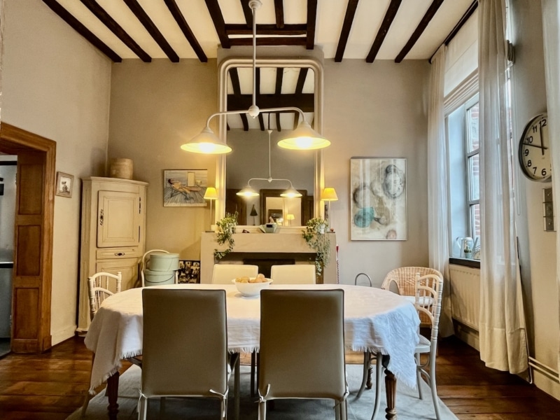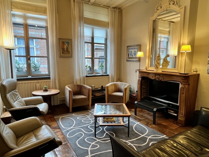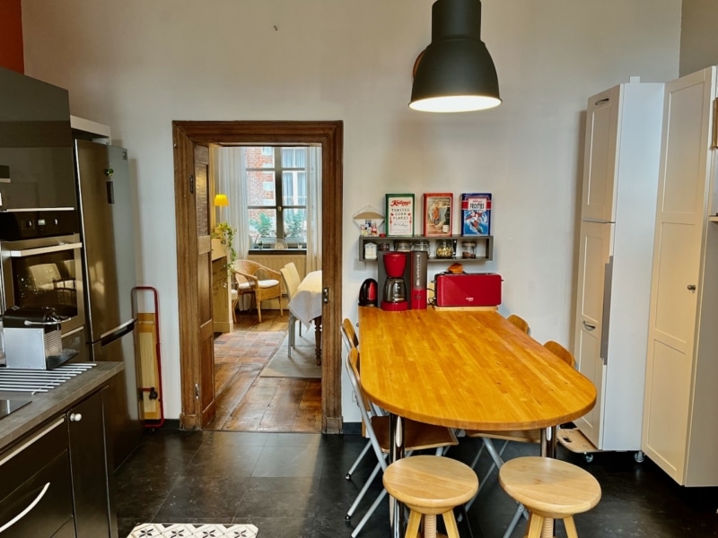 Située dans le centre historique de Mons, au calme, tout en étant à proximité de toutes les commodités, cette maison de caractère de 3 chambres (modifiable pour avoir 4-5 chambres) vous séduira par ses espaces chaleureux et son caractère authentique. L’élégant bâtiment au charme fou associe la brique, la pierre, le bois,… Les pièces de vie se déclinent comme suit : au rez-de-chaussée, un hall d’entrée dessert un bureau, un premier espace salon – salle à manger ou bureaux, un wc, un débarras, une véranda qui prend jour sur l’agréable jardin arboré, tel un havre de paix. Au premier étage, un hall dessert une spacieuse cuisine, une salle à manger, un salon tous deux avec de belles cheminées d’époque, et une salle de bain (baignoire, wc, lavabo). Le dernier étage (espace modulable) se compose d’une chambre parentale, de deux chambres enfants, et d’une salle de douche (douche, lavabo et wc). Caves. Possibilité d’acquérir un garage -en sus- situé à 50 m.